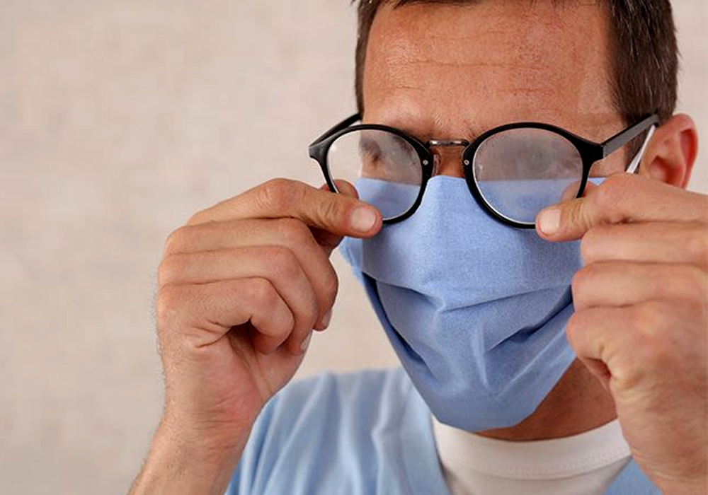 برای افرادی که عینک دارند، و مجبور به استفاده مداوم در طول روز از عینک هستند، استفاده از ماسک منجر به مه آلودگی ( بخار گرفتن) عدسی های عینک می شود که این اتفاق منجر به کاهش میزان بینایی و دید افراد عینکی میشود. دلیل پیش امدن این اتفاق این است که، هنگامی که نفس می کشید، نفس گرم شما به سمت بالا و بالای ماسک شلیک میشود. هنگامی که به لنز سرد برخورد می کند ، نفس خنک می شود ،و سبب تشکیل بخار آب یا همان مه زدگی بر روی عدسی های عینک می شود.
