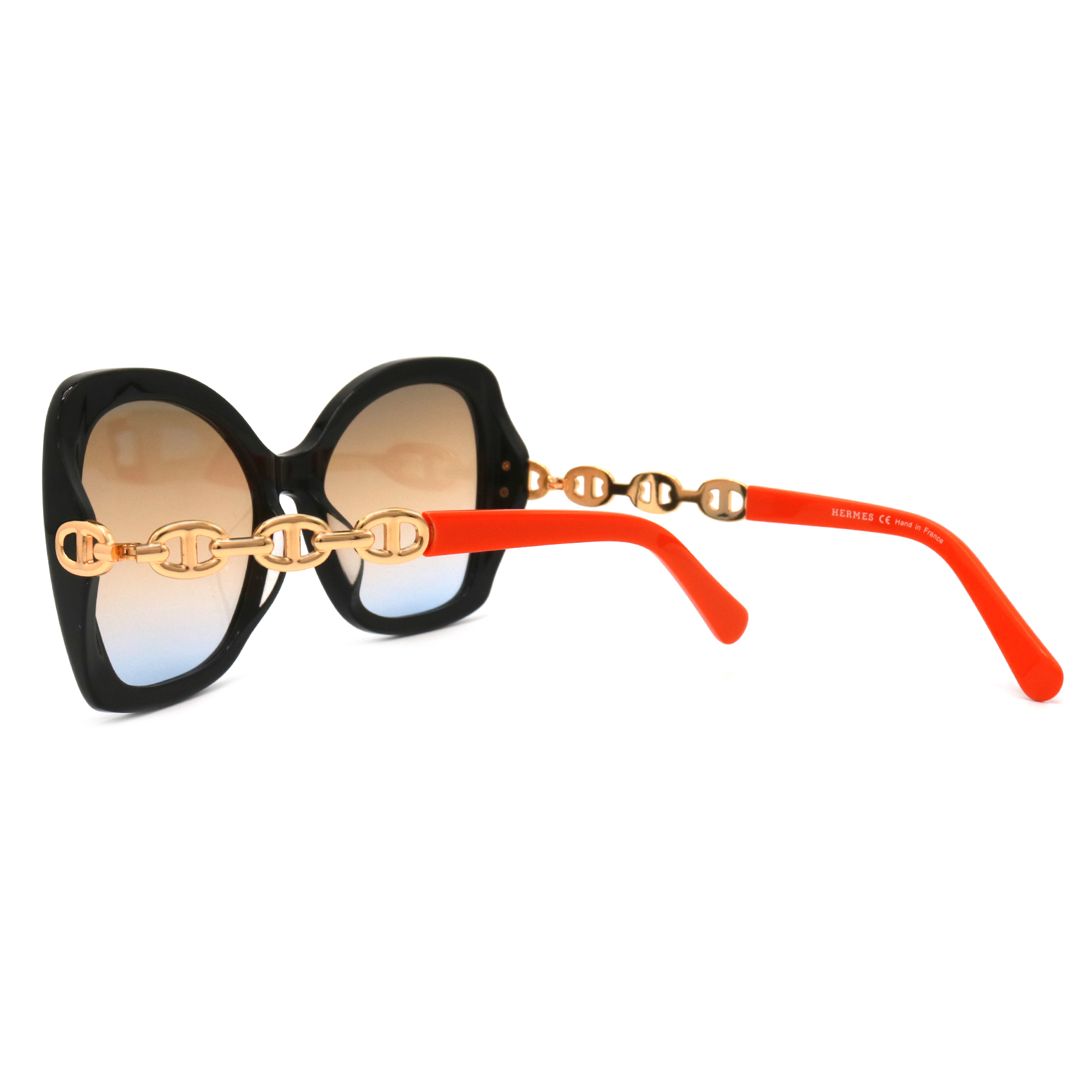 عینک آفتابی HERMES مدل LINDY از مدل های دیگر این برند است که چشم هر خریداری را به خود میگیرد. با ظرافت و رنگ های جذاب عدسی خود برای استفاده روزمره یا مکان های رسمی و مهمانی ها و در هنگام رانندگی های طولانی بسیار مناسب است. فرم فریم این عینک پروانه ای و گربه ای است و برای انواع صورت هایی با فرم های متفاوت، مناسب است. دسته آن ترکیبی از فلز و استات است.
